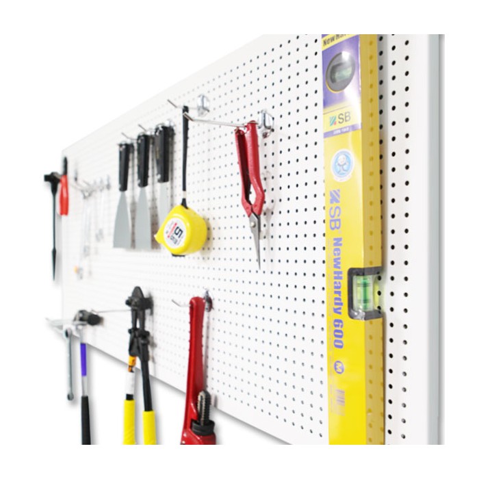 [현재 금속타공판은 주문제작만 가능합니다. 고객센터로 문의주세요.] 다양한 사이즈의 벽걸이(부착형) 금속보드로 간편하게 설치하여 사용하실 수 있습니다. 자석걸이/후크/보조선반을 사용하여 다양한 배치로 실용성이 뛰어나며 1.2T 금속재질로 견고함과 깔끔한 디자인으로 사용방법에 따라 모던한 인테리어 효과를 연출하실 수 있습니다. 타사 제품은 나사를 직접 타공판에 고정하기 때문에 나사가 돌출하여 미관상 보기좋지 않지만 본 제품은 국산으로 브라켓을 이용하기 때문에 나사가 보이지 않아 깔끔합니다.