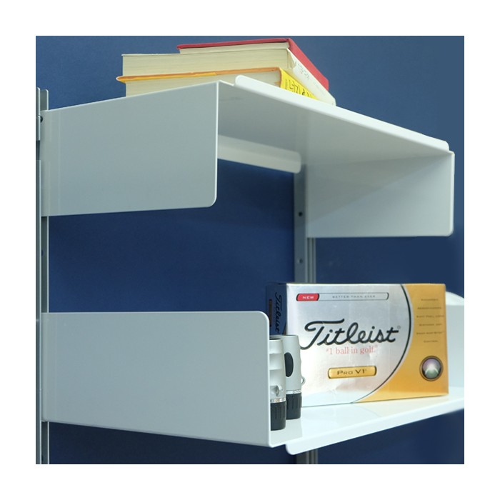 H선반은 간단한 설치로 벽면을 활용한 공간연출이 뛰어난 디스플레이 솔루션이며 1.6T 금속으로 제작되어 견고하며 심플한 디자인으로 세련된 공간을 연출합니다.
