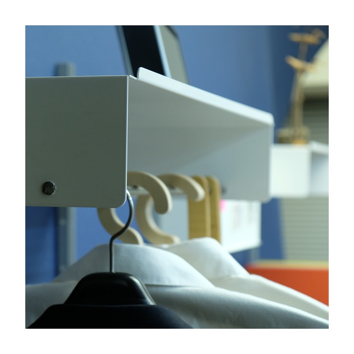 H선반은 간단한 설치로 벽면을 활용한 공간연출이 뛰어난 디스플레이 솔루션이며 1.6T 금속으로 제작되어 견고하며 심플한 디자인으로 세련된 공간을 연출합니다.