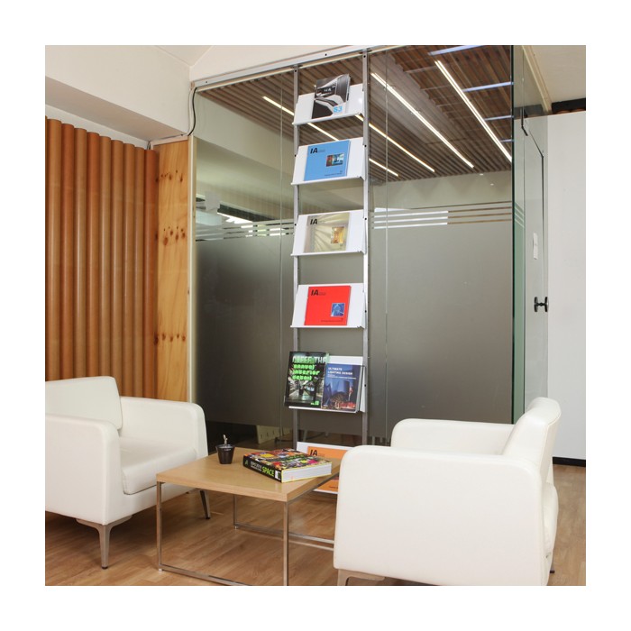 유리벽면용 S선반은 상단과 하단 고정으로 견고하게 설치하실 수 있기 때문에 활용도가 낮은 회의실 유리벽에도 손쉽게 설치가 가능하여 공간활용에 실용적입니다.