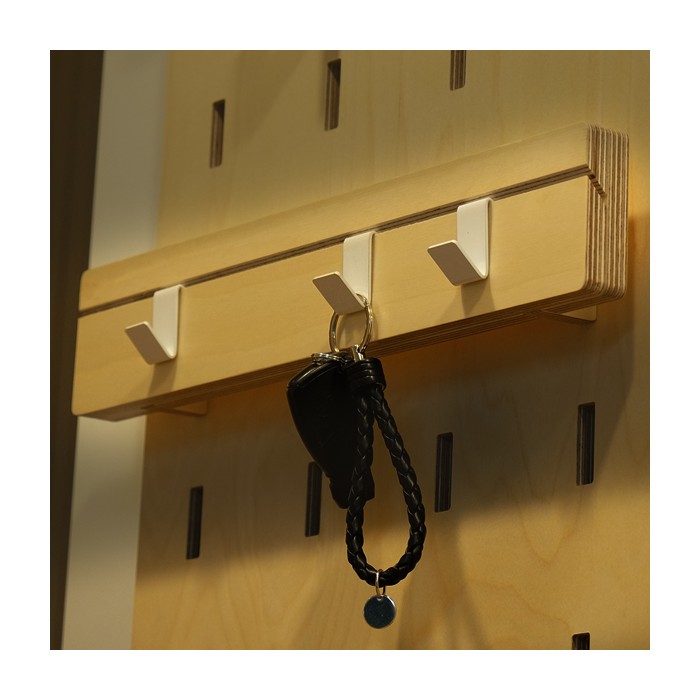 본 상품에는 금속후크(흰색) 3개가 포함됩니다. "자작나무 후크형 보드"는 일반 목재선반에 비해 월등하게 단단하며 견고합니다. 간편하게 설치가 가능한 "자작나무 후크형 보드"는 다양한 "후크/랙/거치대" 아이템을 구매하셔서 용도에 맞춰서 사용하실 수 있습니다. "자작나무 후크형 보드"는 투명코팅 처리가 되어 표면이 매끄럽고 스크래치에 강합니다. 목재의 특성상 장기간 사용할 경우 색상이 진하게 변할 수 있습니다.