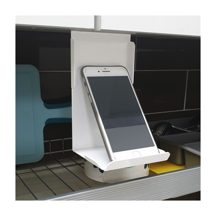 센스있는 주방,사무실 등 생활 아이템입니다. 1.6T 두께로 금속특유의 깔끔하고 견고함을 살린 실용적인 아이템입니다. 색상은 흰색(white) 입니다. 물기있는 주방에서 휴대폰,차키,지갑 등 임시로 놔둘 수 있는 유용한 아이템입니다. 주방 싱크대에 걸어서 휴대폰으로 영상통화, TV시청, VOD감상, 레시피 등을 보시기에 편리합니다. 금속재질이기 때문에 자석을 이용한 다양한 활용이 가능합니다.